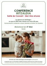 Idoia Rodriguez Mondragon, ingénieure pédagogique, spécialiste des stéréotypes des genres, conférencière et auteure, animera cette conférence. Le thème abordé portera sur "Le genre en héritage : Ce que la fête des mères ne nous dit pas."