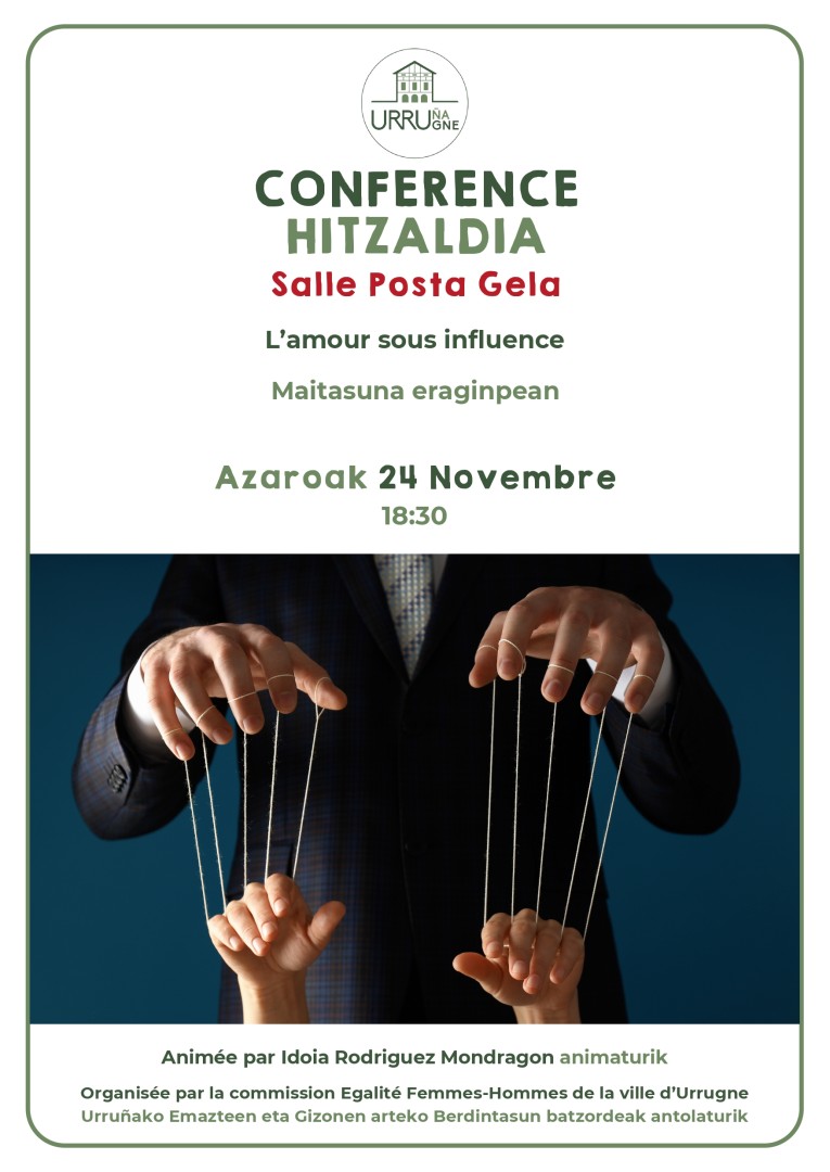 Idoia Rodriguez Mondragon, ingénieure pédagogique, spécialiste des stéréotypes des genres, conférencière et auteure, animera cette conférence. Le thème abordé portera sur "L'amour sous influence."