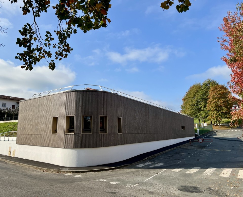 A l’issue des réflexions et scénarios programmatiques, la ville d’Urrugne a décidé de créer une cuisine centrale pour la production de 450 repas / jour en liaison chaude à l’emplacement de l’office de remise en température et du réfectoire de l’école maternelle du bourg :