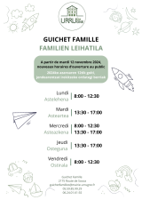 A partir du 12 novembre 2024, le Guichet Famille modifie ses horaires d'ouverture au public