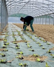 600 plants de salades biologiques ont été répartis par Thomas Lacombe, chargé