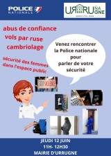 La Police nationale organise une réunion d’information sur la sécurité ce jeudi 12 juin de 11h à 12h30 en mairie, dans la salle du Conseil municipal.